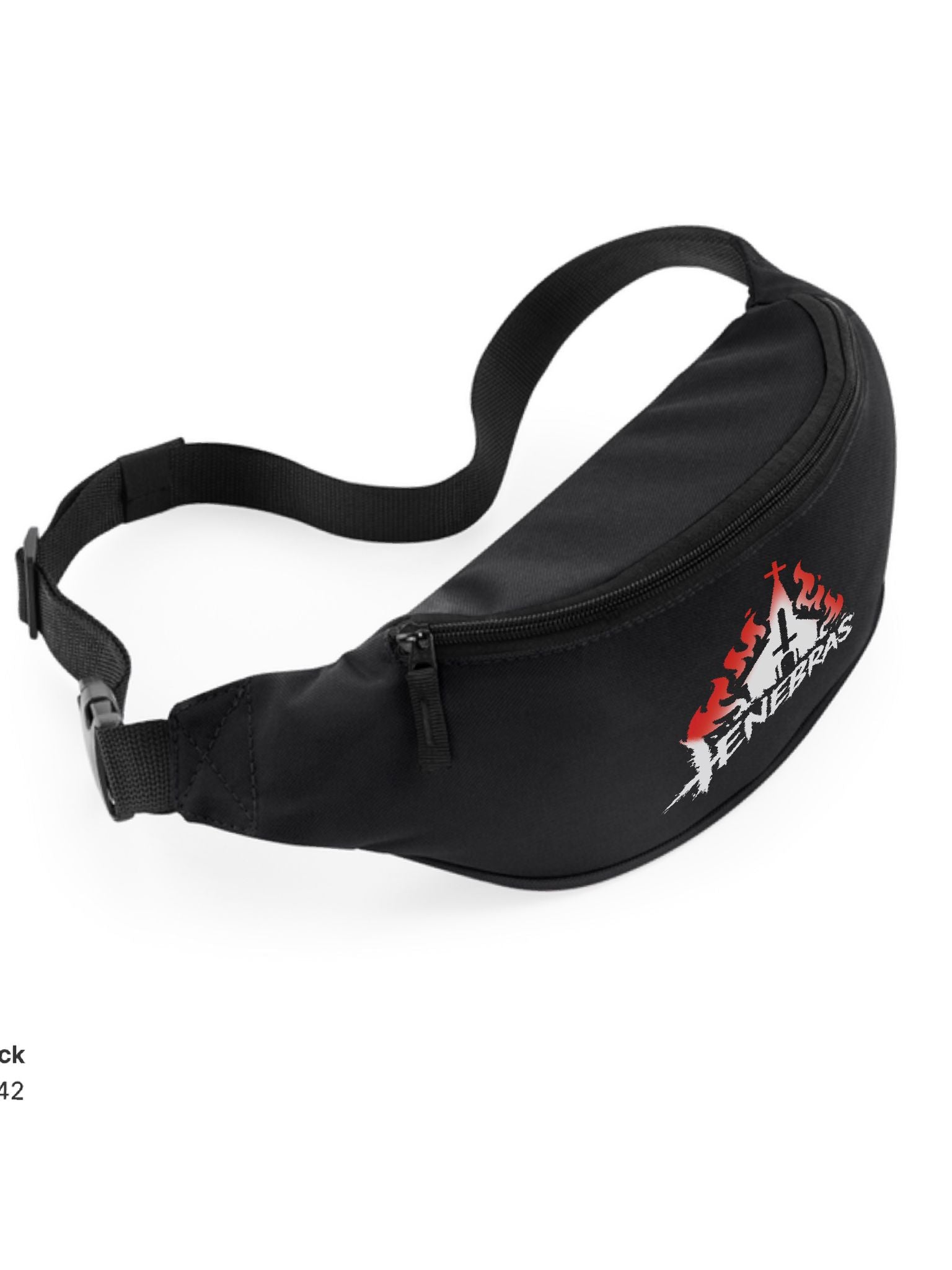 Gardez vos essentiels à portée de main sans sacrifier votre allure. Le sac banane Tenebras allie utilité urbaine et esthétique radicale avec son visuel emblématique de l'église en flammes et son logo griffé. Un accessoire indispensable pour compléter votre silhouette underground, que ce soit en festival, en concert ou au quotidien.
